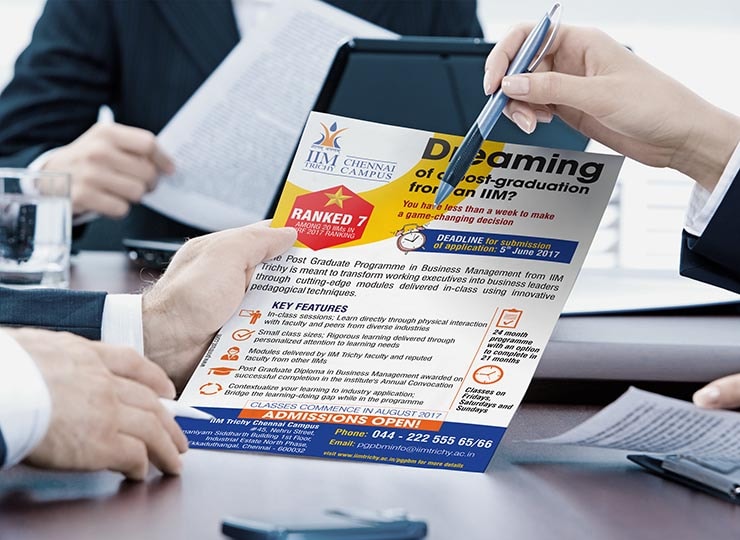 We at OI had the privilege to design logos for IIMT Chennai Centre and PGPBM, one of the flagship programmes of IIM Tiruchirappalli (IIMT). The logos have been trademarked. Apart from the logos, we had designed Print Ads for PGPBM programme that has been published in the leading daily newspapers like The Hindu, The Times of India and The Economic Times. The Campaign was a major success in creating awareness for working executives and recruiting bright talents to the course. A photo shoot was done with the IIMT Alumni to feature in the Print Ad.
