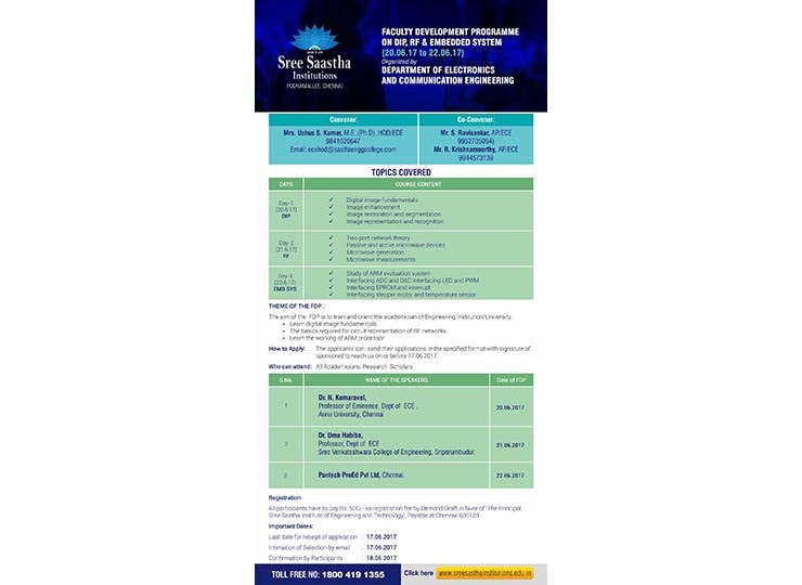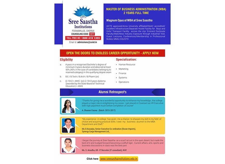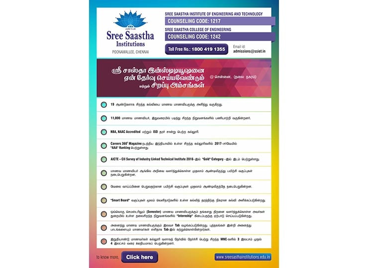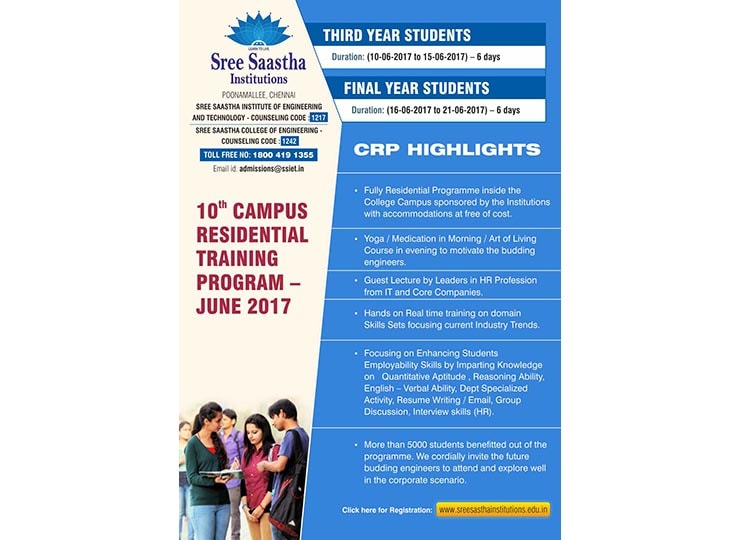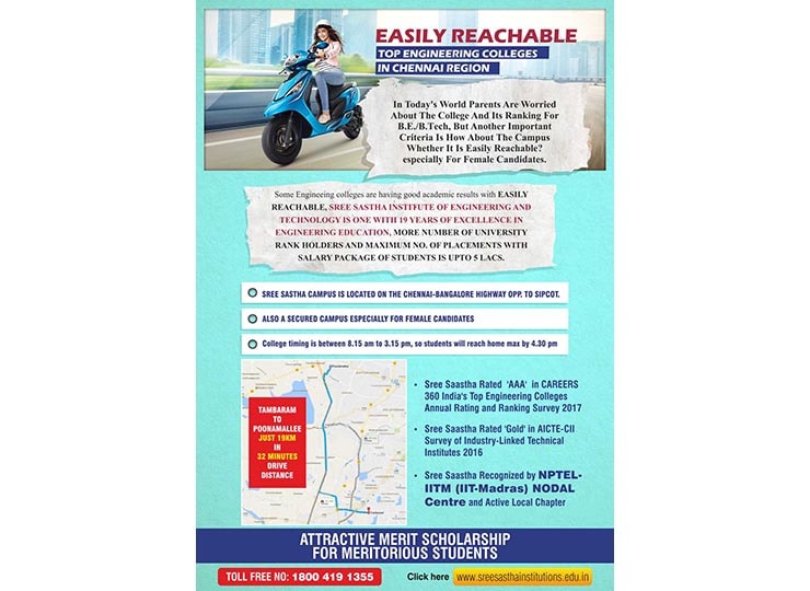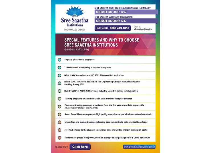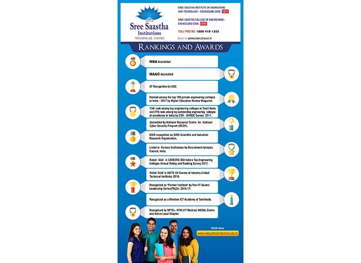 Sree Sastha Institute of Engineering and Technology was established in the year 1999 with B.E & B.TECH courses in ECE, EEE, CSE, IT, CIVIL, MECH, Biotechnology, Automobile. The institution has a vision of “developing into a multidisciplinary, multi campus technological institution of excellence in this part of the globe, providing the right ambience and environment to create engineers and technocrats who serve the needs and demands of society”. (Source: www.sreesasthainstitutions.edu.in).