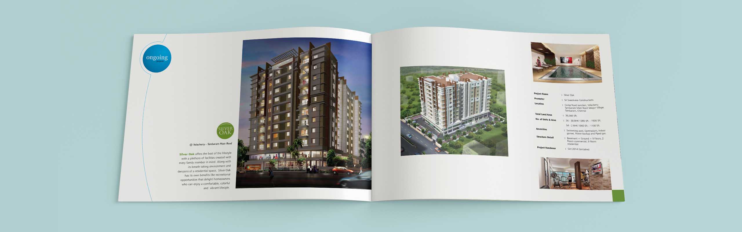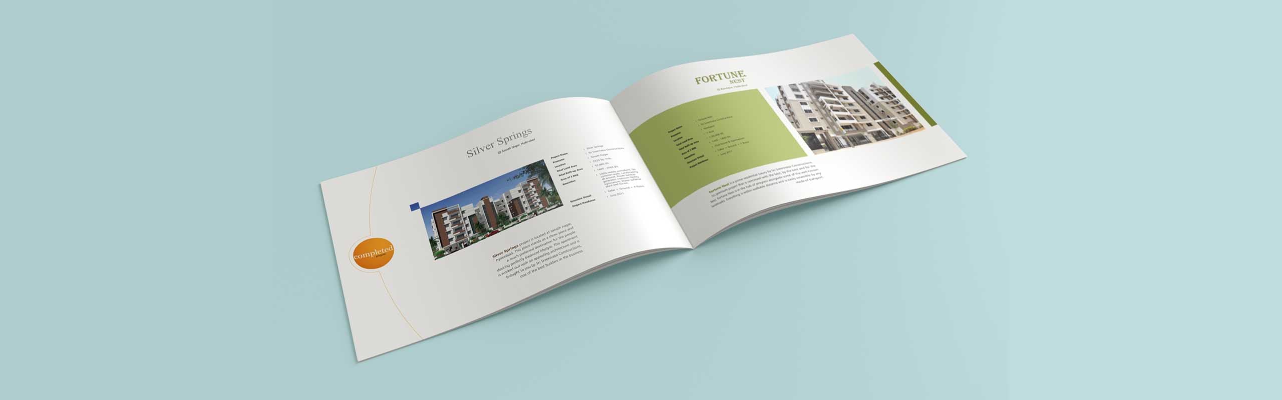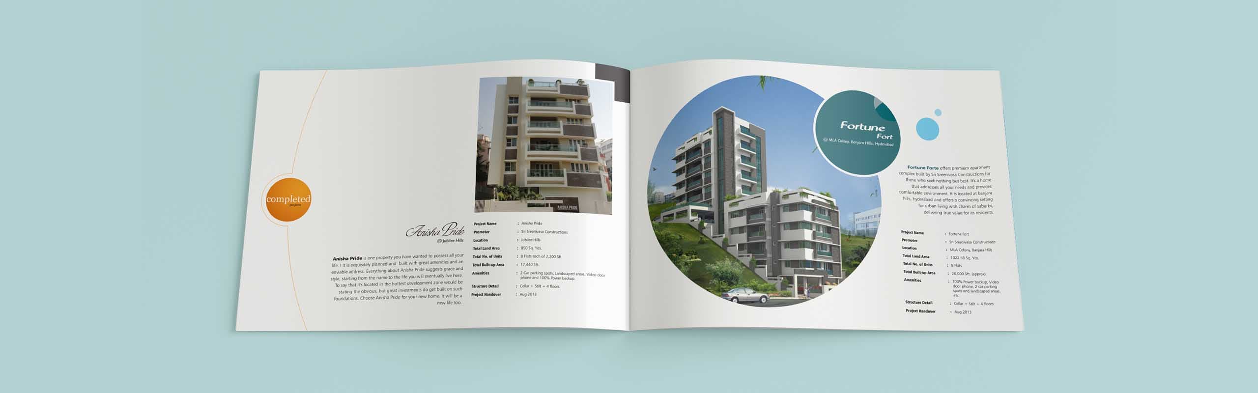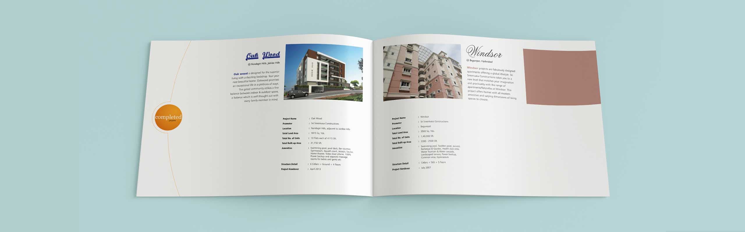 We at OI had the opportunity to design company profile brochure for Sri Sreenivasa Construction with all their completed, on-going and future projects. The color schemes of the brochure design represent the vibrant energy that our client produces while engaging in projects. The font styling represents their elegant character. The curves represent their flexibility in achieving exceptional customer satisfaction We are proud to say that out client is extremely happy with our artwork for profile brochure