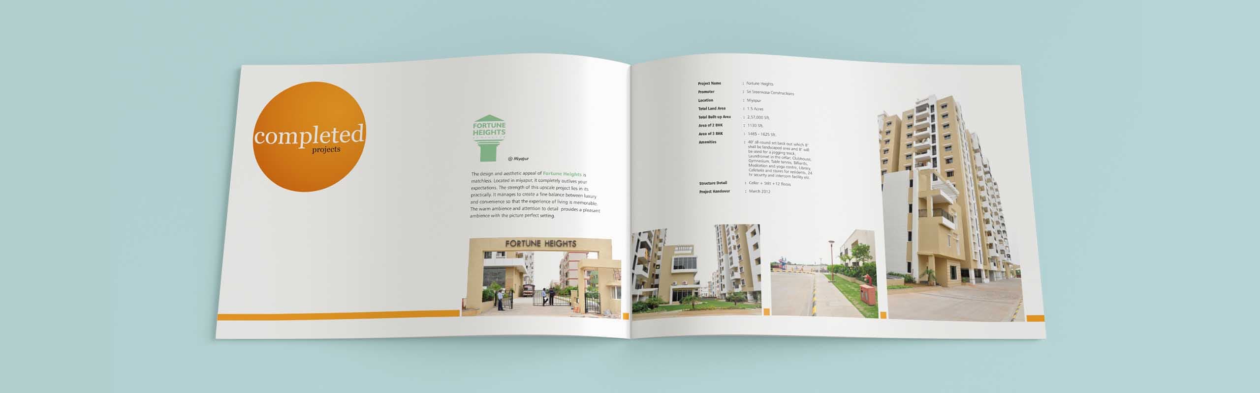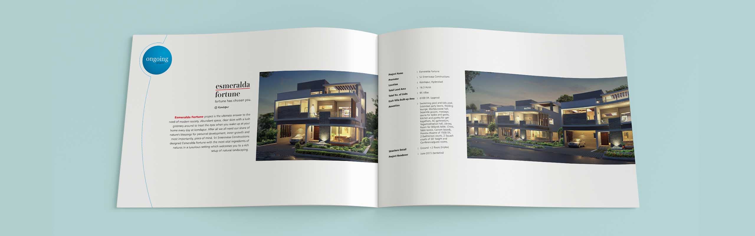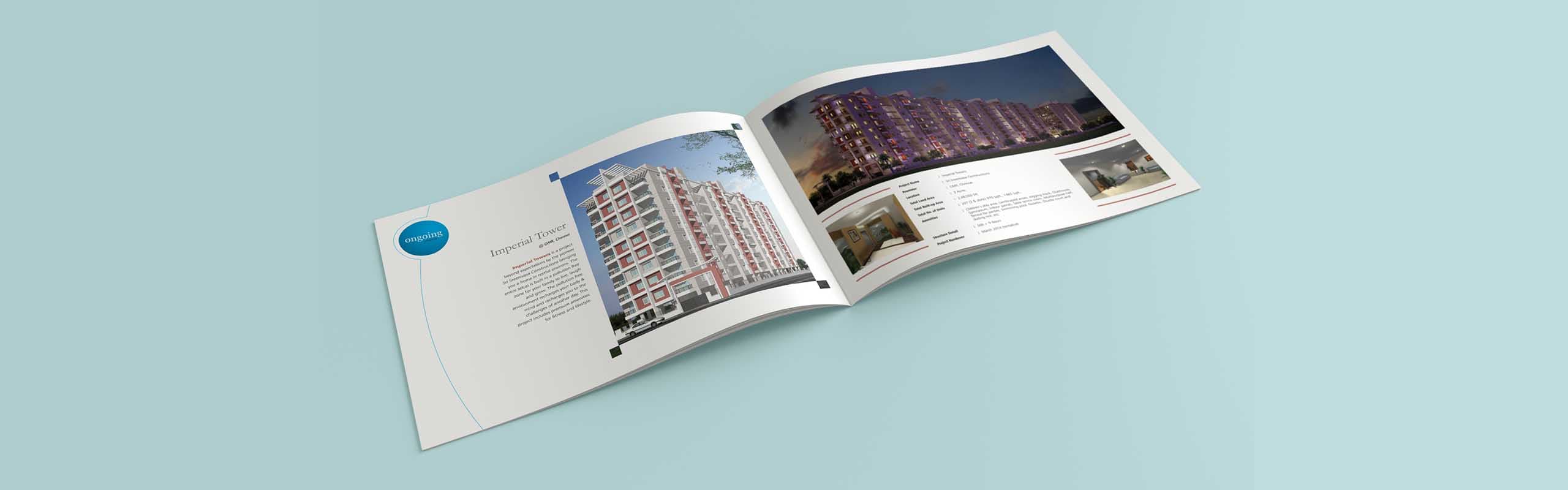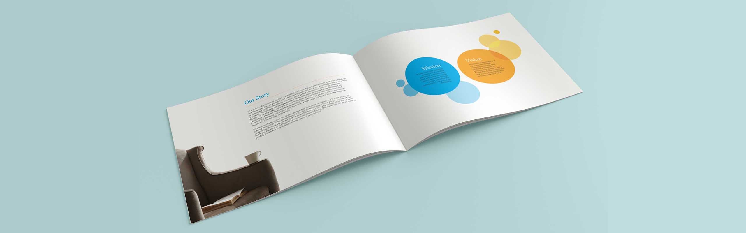 We at OI had the opportunity to design company profile brochure for Sri Sreenivasa Construction with all their completed, on-going and future projects. The color schemes of the brochure design represent the vibrant energy that our client produces while engaging in projects. The font styling represents their elegant character. The curves represent their flexibility in achieving exceptional customer satisfaction We are proud to say that out client is extremely happy with our artwork for profile brochure